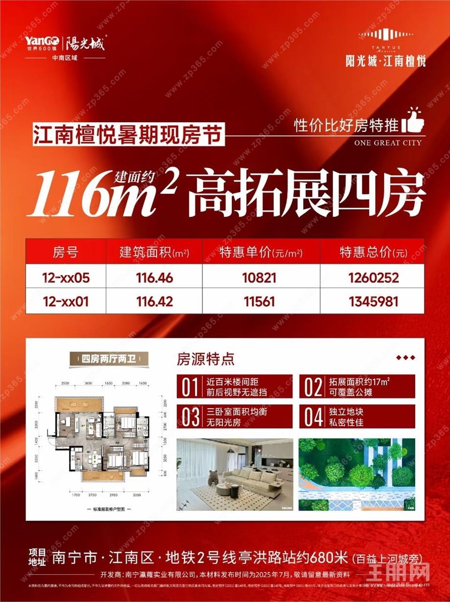 万达旁品质现房推荐 江南檀悦116平大四房 可拓展28㎡,南北加长双阳台 树景房,高性价比,首付5万起