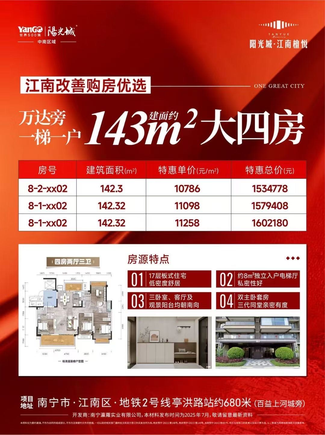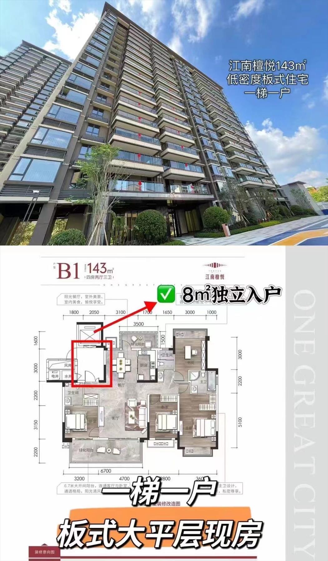 万达旁现房 江南檀悦👉一梯一户大平层 🏠143m² 单价10600起 💥南北双阳台+独立入户8m²